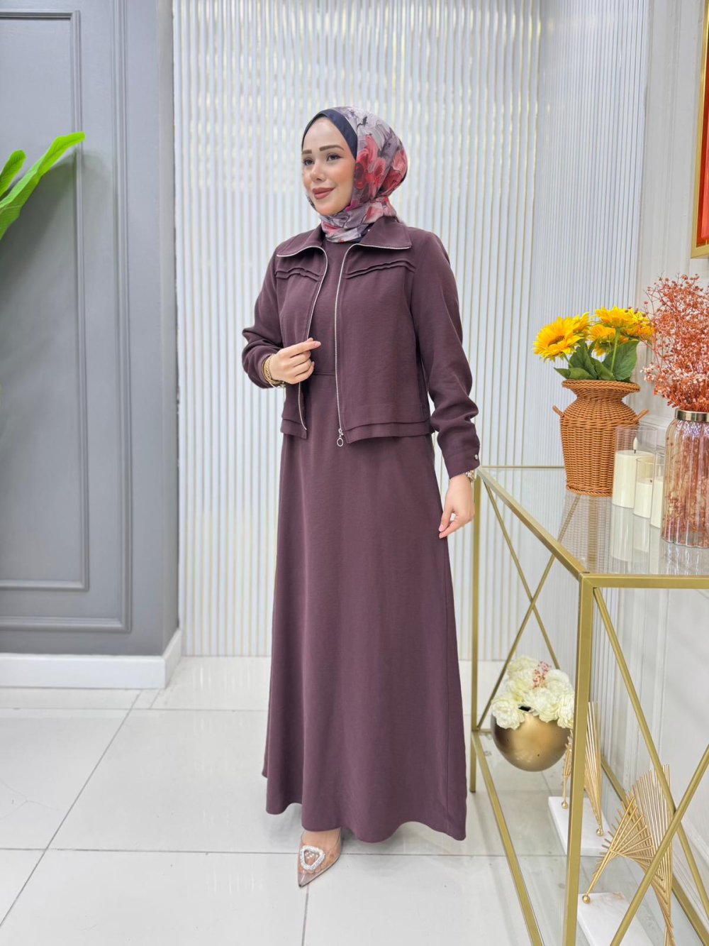 Meryem Ceketli Elbise Takım Mürdüm