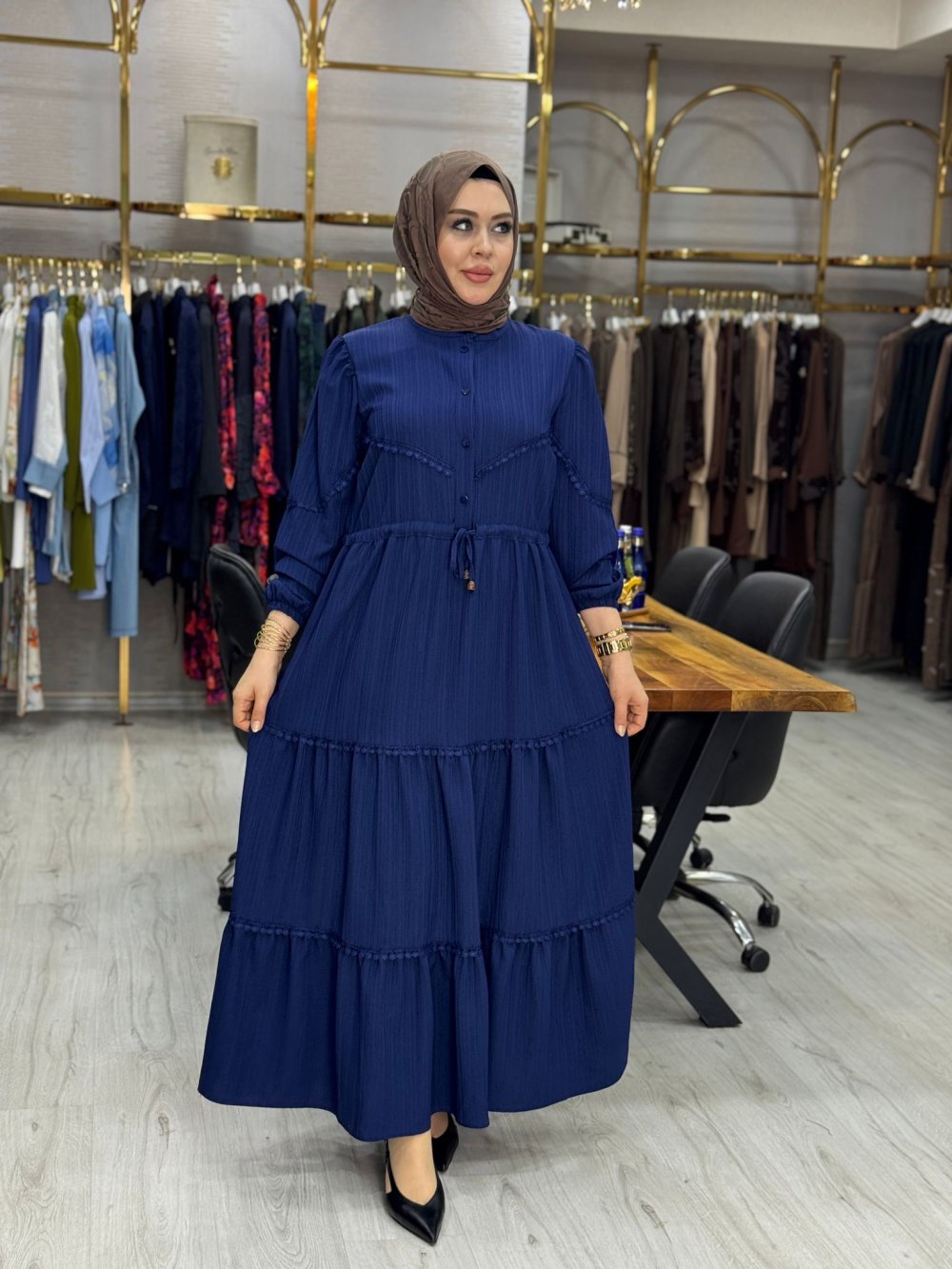 Kumaşı krinkıl kumaştır. Belden iplidir. Kol uçları lastiklidir. Önü yarım düğmelidir.