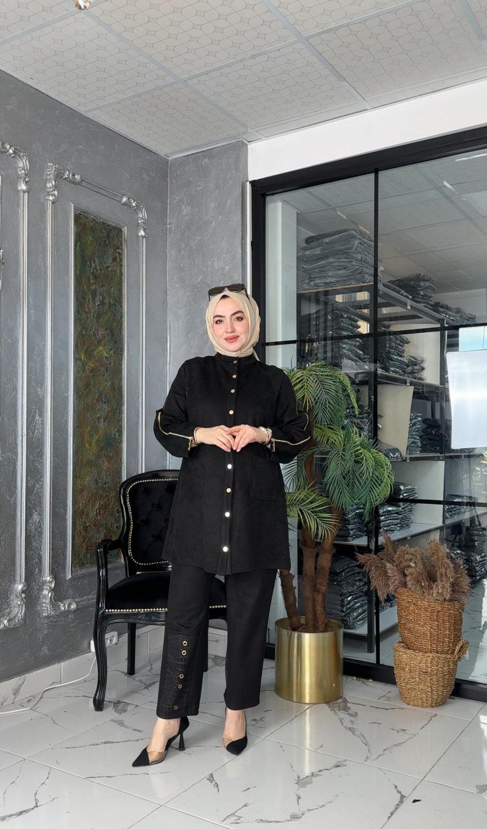 Miray Süet Takım Siyah Siyah
