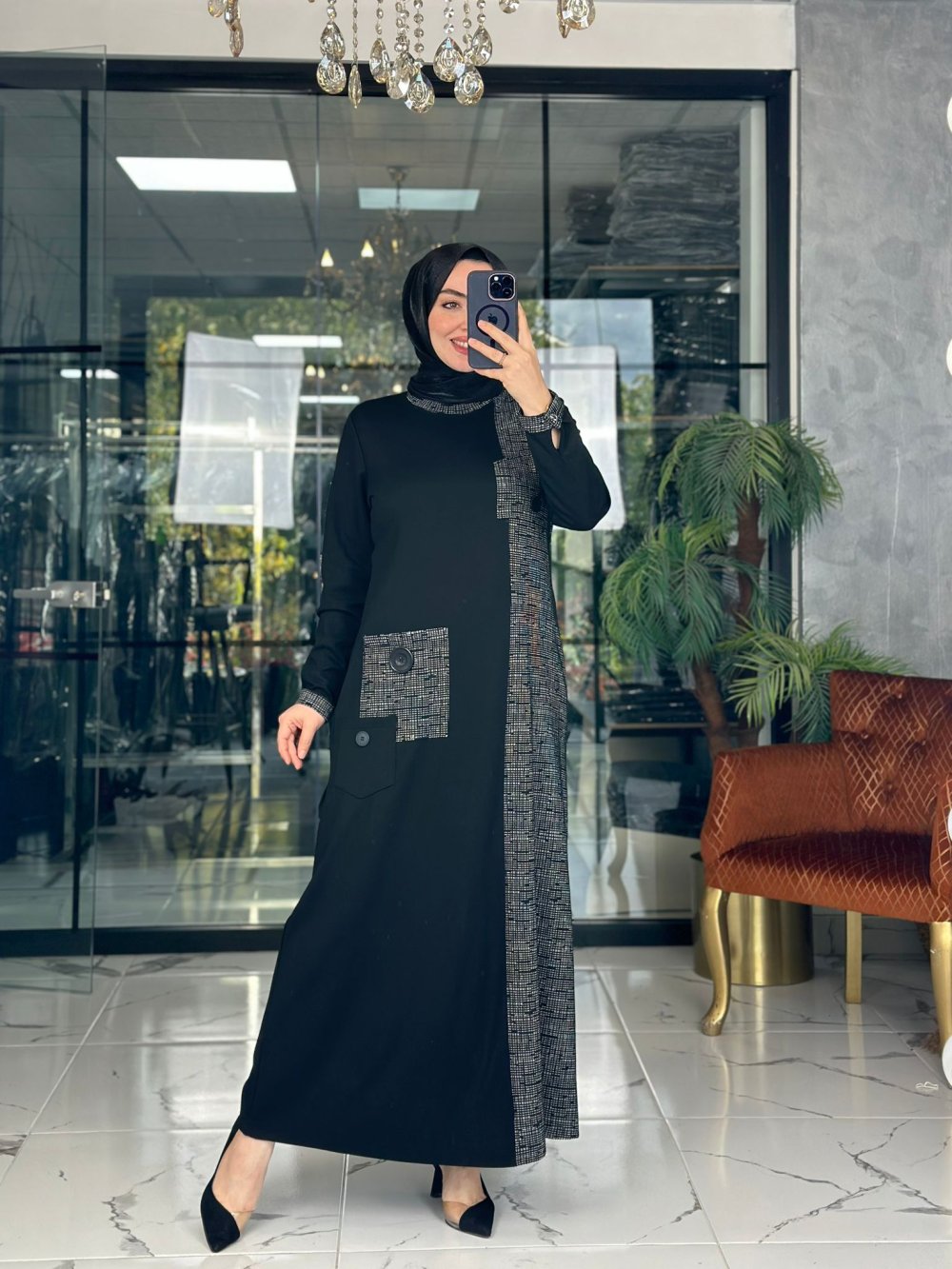 Kumaşı çeliktir. Cepleri desendir, cebi yoktur. Fermuarı yoktur.