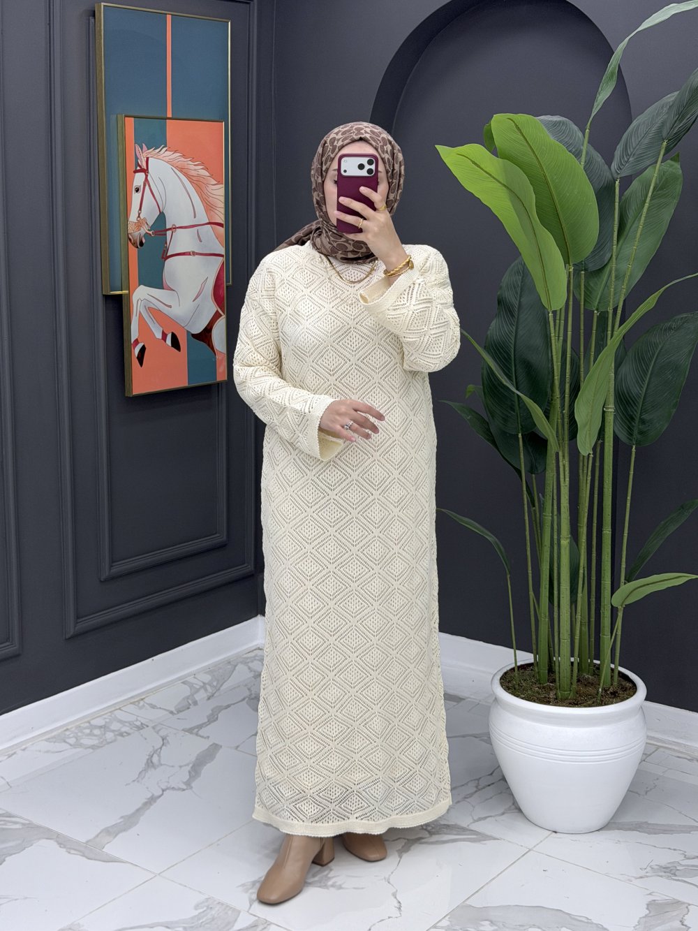 Örme İçlikli Elbise - Bej Bej