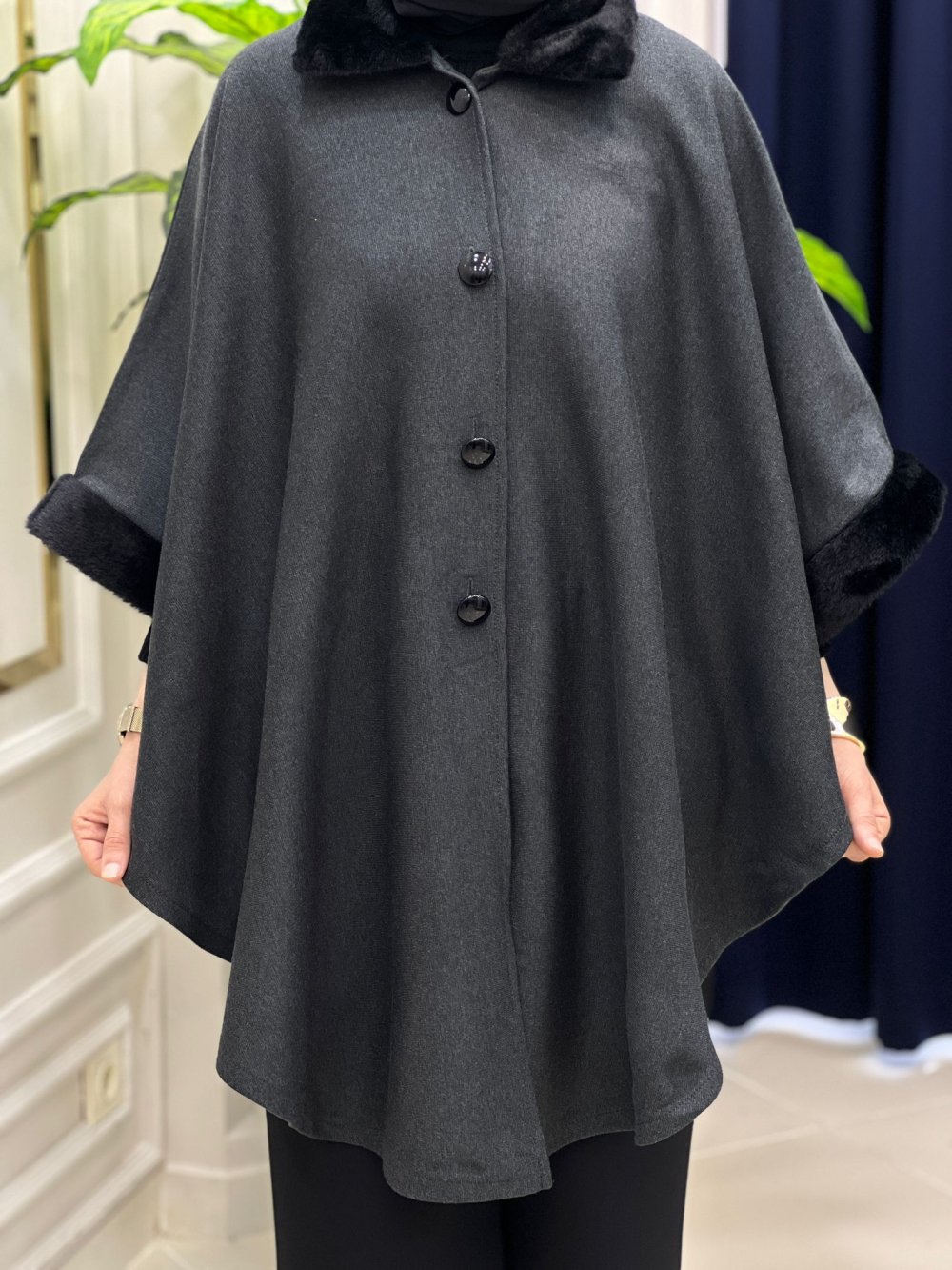 Kürk Detaylı Pançomuz 52 Bedene kadar uyumlu stoklarda Kod Panço: 13132 Taş detaylı ve düğmelidir KUMAŞ :1.Sınıf triko kumaş esnektir BEDEN : 38/52uyumlu standart BOY 90.93cm FİYAT Kargo ücretsiz