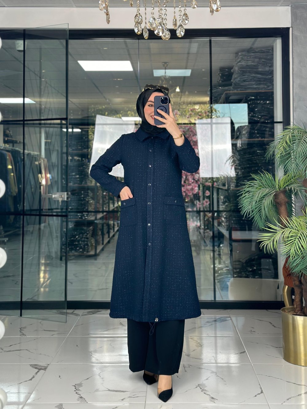 Kumaşı tüvit kumaştır. Kendinden simlidir. Önü düğmelidir.