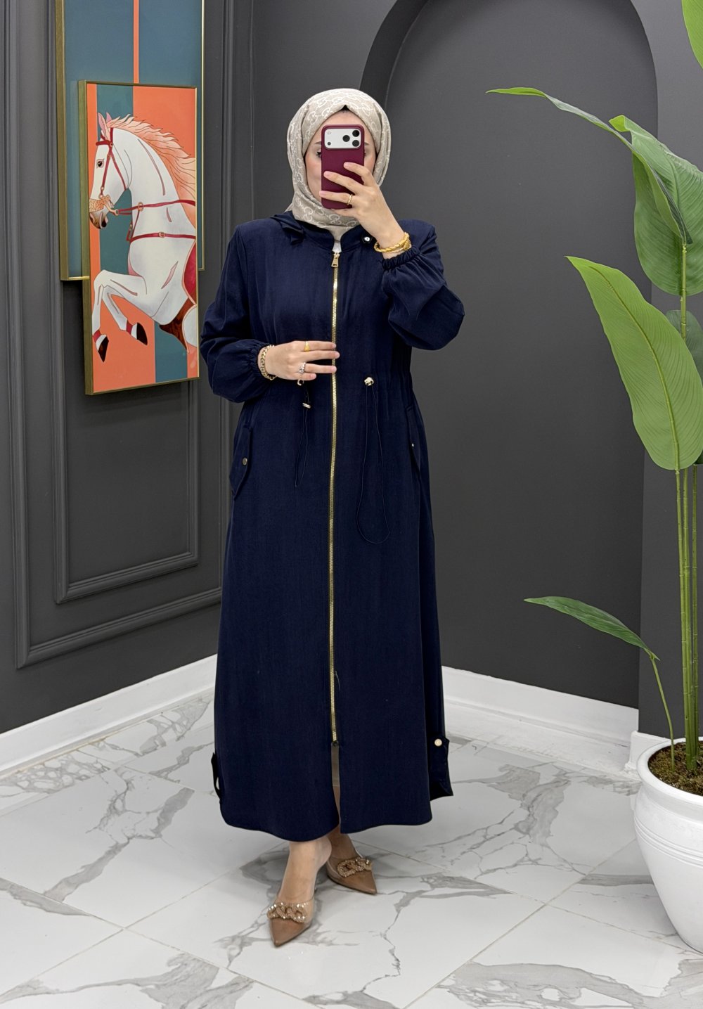 Qupra Kumaş Uzun Kap - Laci Lacivert