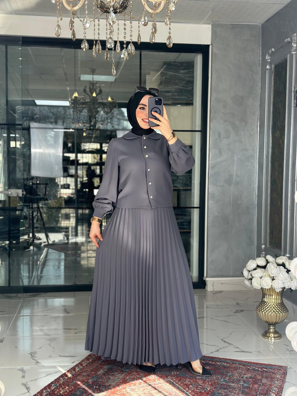 Rümeysa Etek Takım Gri Gri