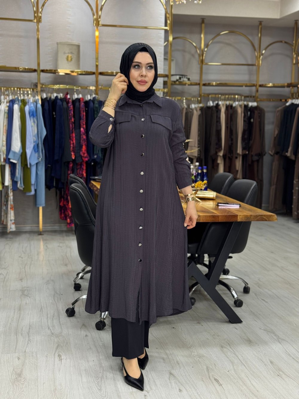 Kumaşı . Cep kapak detayı vardır. Cepleri yoktur. Önü düğmelidir.