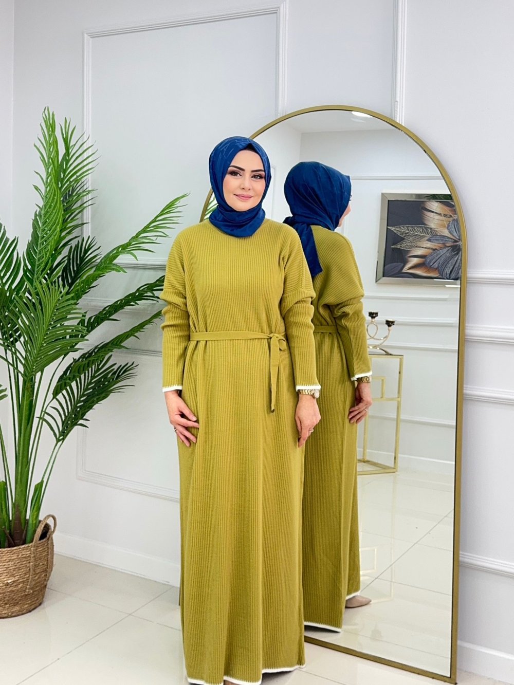 SELVİ TRİKO ELBİSE-YAĞ YEŞİLİ