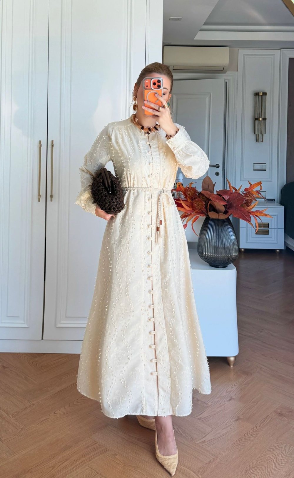 Ürün Önden Düğmeli ve Örgü Kemerlidir