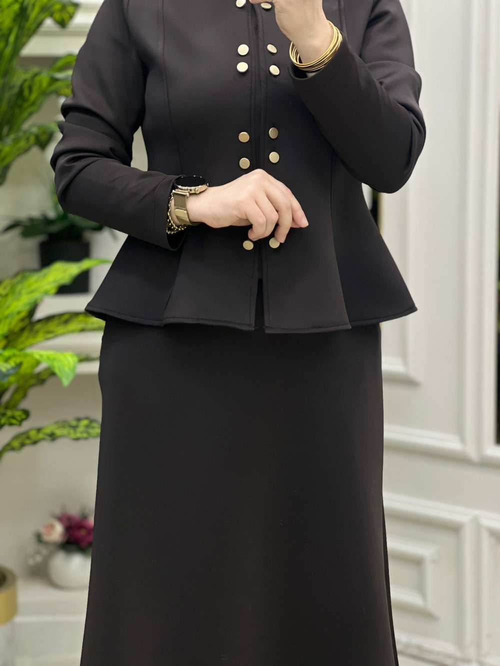 Senem ikili Ceket Etek Takım Efsane rahat uzerinizde yokmus gibi hissedeceksiniz hanımlar Senem takım kod.13147 Ceket önden düğmeli açılabilir şekilde Fiyat kargo ücretsiz Beden 38 40 42 44 Kumaş Türü: Dalgic esnek likrali kumaş Ceket boy: 50cm Etek boy: 93.95cm Etek beli fermuarlıdir