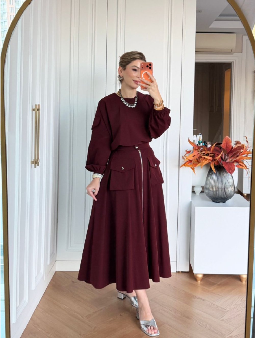 Takım Etek Tam Boy Fermuar Detaylıdır.
