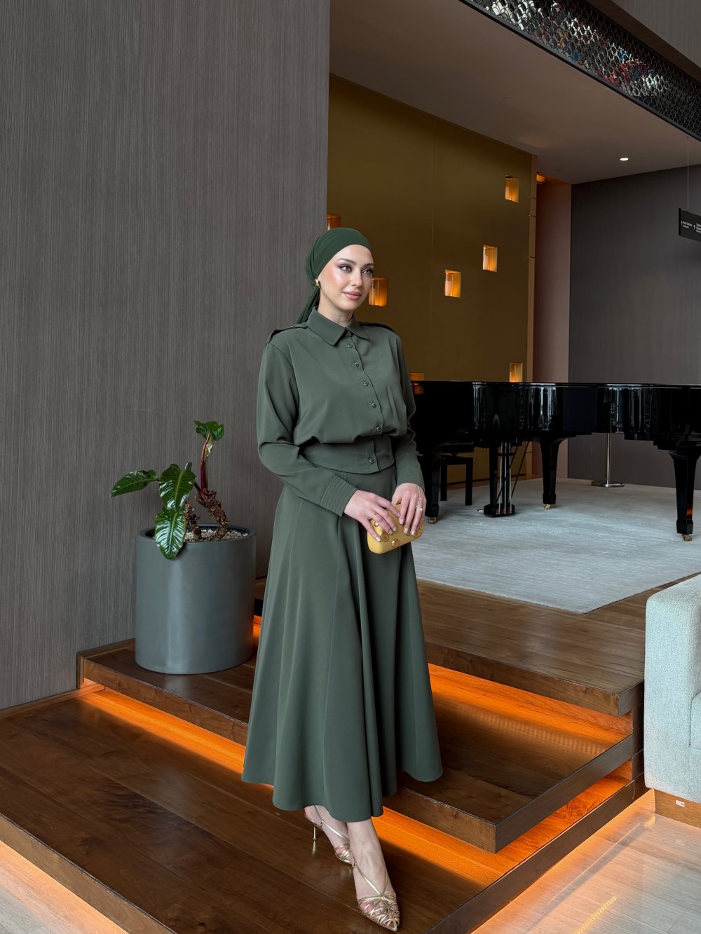 Ceket düğme detaylıdır. Omzunda detay vardır.
