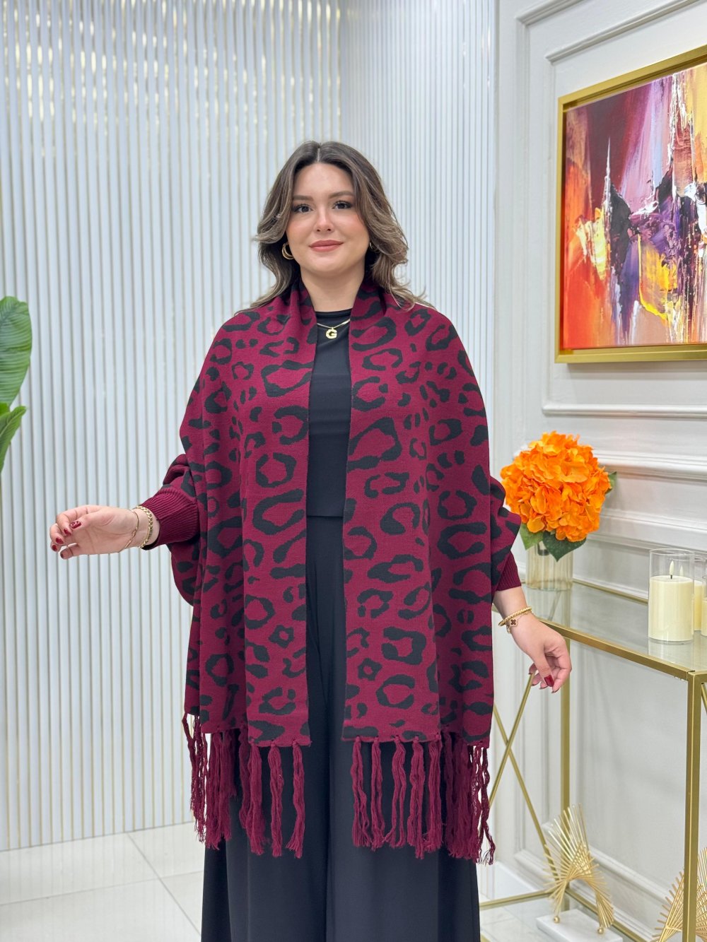 Sınırsız Beden Panço Bordo