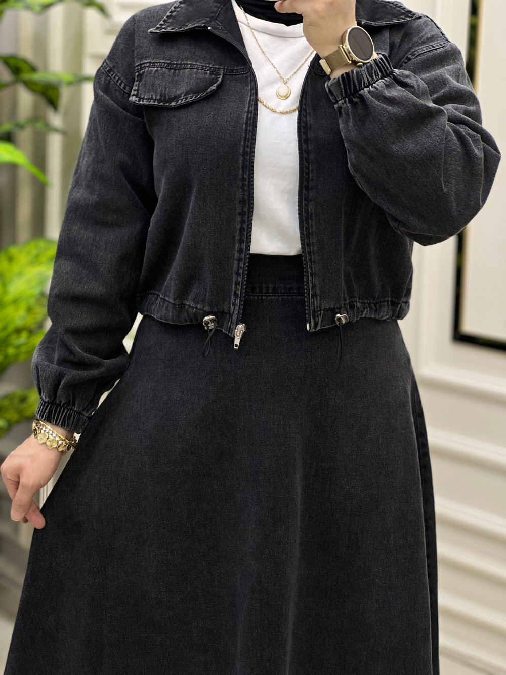 Kot Etek Ceket Takım Stil takım kod.13168 Ceket Beli lastikli Fiyat kargo ücretsiz Beden 38 40 42 44 Kumaş Türü:yumuşak kot Ceket boy: 45 cm Etek boy: 93.95 Etek beli fermuarlı