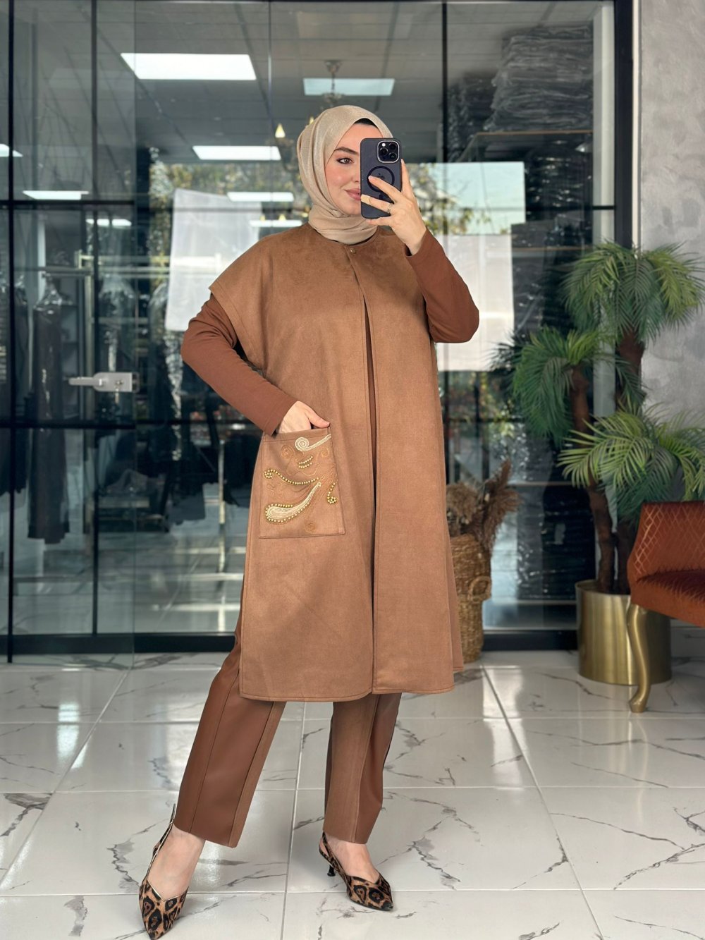 Kumaşı süettir. Yaka kısmında 1 adet düğmesi vardır. yanları yırtmaçlıdır.