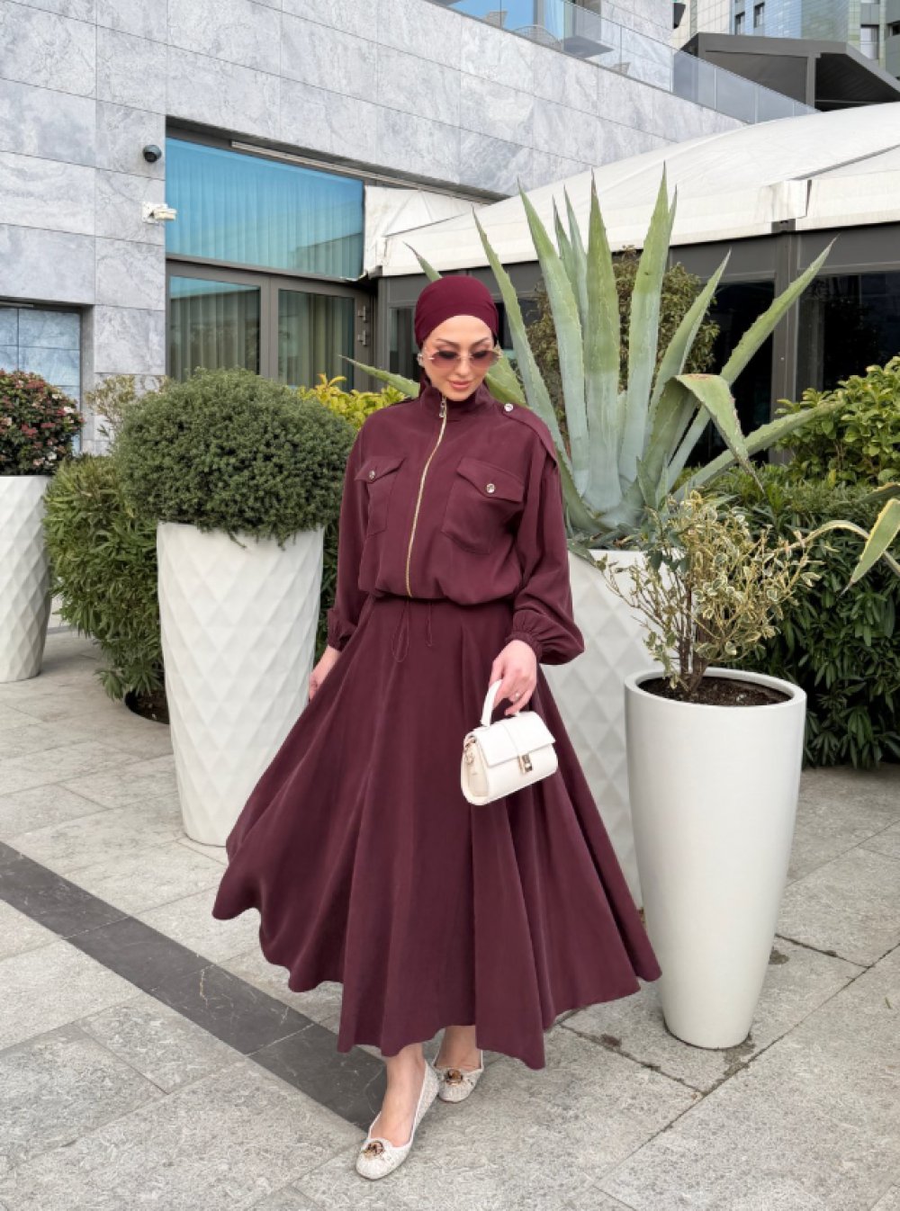 Sümeyra Etekli Takım Bordo