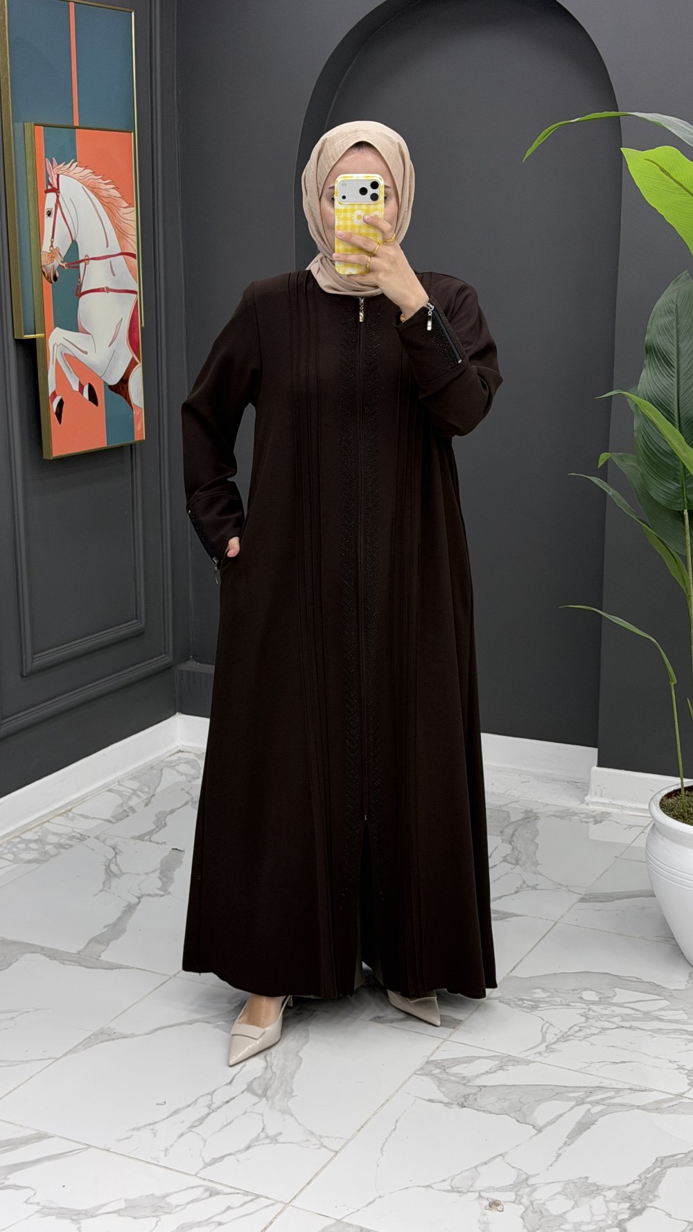 Taş Detaylı Tasarım Ferace-Kahverengi Kahverengi