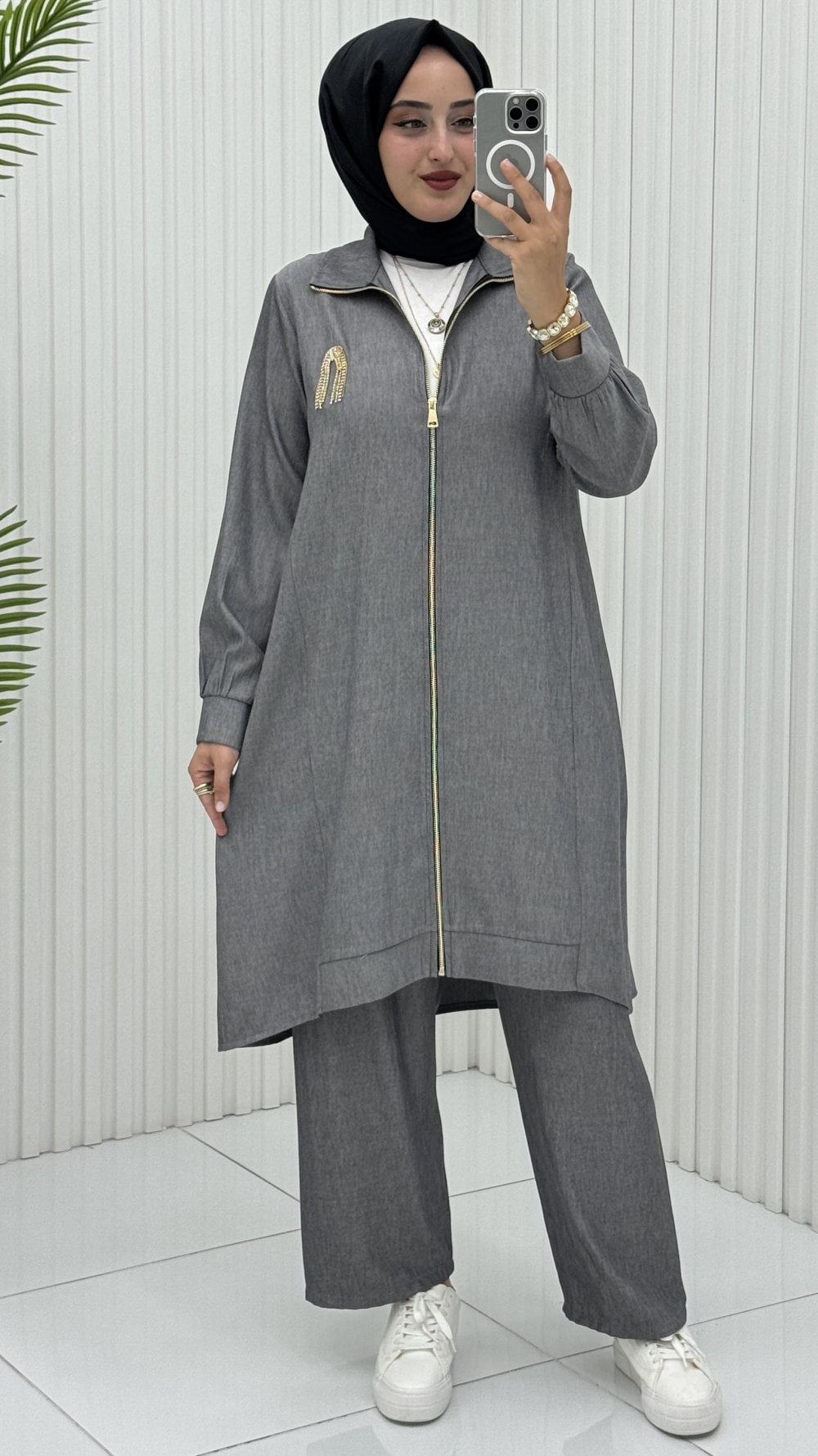 Tuana Takım,hem iş hem de günlük hayatınızda rahatlıkla tercih edebileceğiniz çok yönlü bir parçadır. Şıklığı konforla buluşturan bu tasarım, sezonun en gözde modellerinden biri olacak