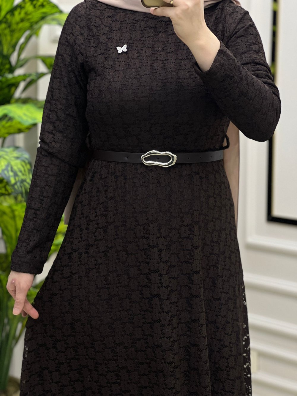 Tuba Dantel Elbise Kahverengi