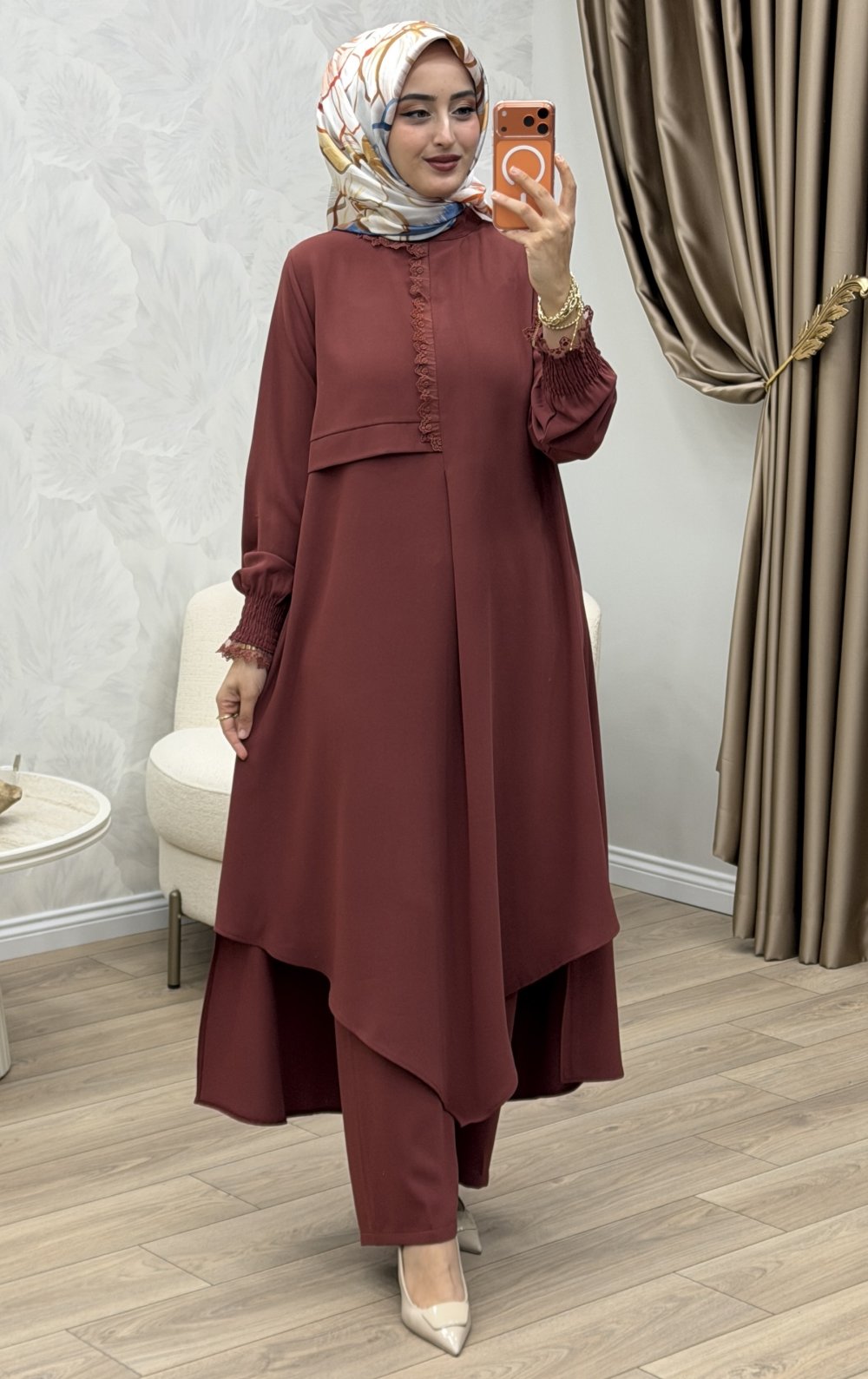 Rahatlık ve şıklığı bir araya getiren Tülin Takım,sade ama zarif duruşuyla günlük kombinlerinizi güçlendiriyor. Yumuşak kumaşı ve esnek yapısı sayesinde gün boyu konfor sunarken, modern kesimiyle stil sahibi bir görünüm yaratır.